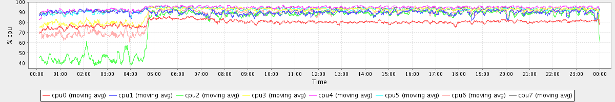 avg(cpu0) = 79.98 avg(cpu1) = 89.82 avg(cpu2) = 80.28 avg(cpu3) = 90.26 avg(cpu4) = 94.42 avg(cpu5) = 92.60 avg(cpu6) = 86.21 avg(cpu7) = 93.09