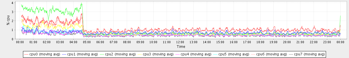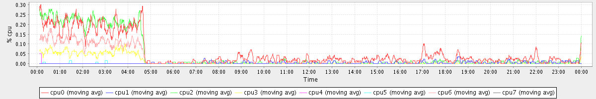 avg(cpu0) = 0.05 avg(cpu1) = 0.00 avg(cpu2) = 0.05 avg(cpu3) = 0.01 avg(cpu4) = 0.00 avg(cpu5) = 0.00 avg(cpu6) = 0.02 avg(cpu7) = 0.00
