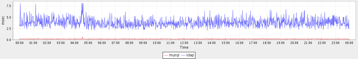 avg(mysql) = 0.16 avg(ldap) = 3.79