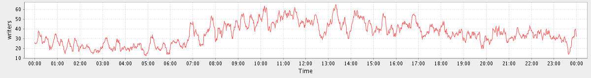 avg(processes waiting for run time) = 0.73 avg(processes waiting for io time) = 0.77 avg(load average (1 min)) = 1.57