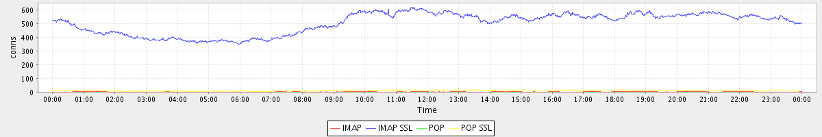 Host zm05.stanford.edu: Mailboxd: Active Connections by Client Protocol
