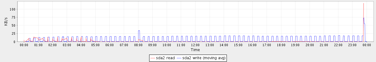 avg(sda2 read) = 0.13 avg(sda2 write) = 4.92