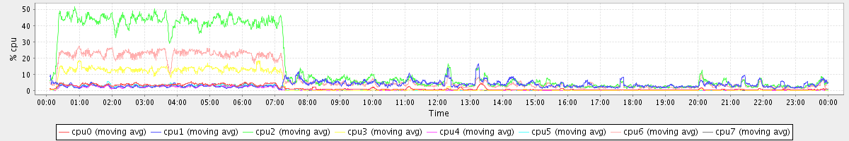 avg(cpu0) = 1.39 avg(cpu1) = 0.81 avg(cpu2) = 1.43 avg(cpu3) = 0.88 avg(cpu4) = 0.58 avg(cpu5) = 0.61 avg(cpu6) = 0.95 avg(cpu7) = 0.53