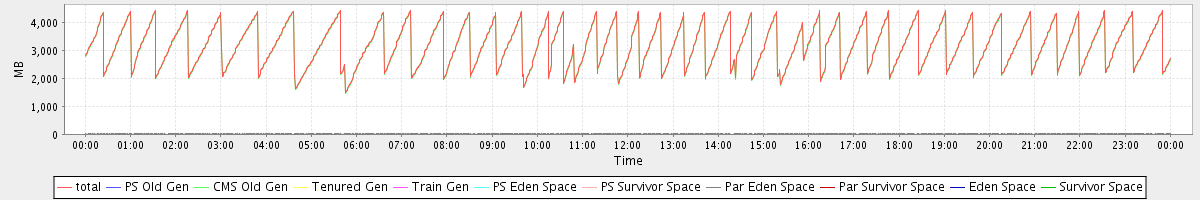 avg(total) = 3188.60 avg(PS Old Gen) = 0.00 avg(CMS Old Gen) = 3167.78 avg(Tenured Gen) = 0.00 avg(Train Gen) = 0.00 avg(PS Eden Space) = 0.00 avg(PS Survivor Space) = 0.00 avg(Par Eden Space) = 20.82 avg(Par Survivor Space) = 0.00 avg(Eden Space) = 0.00 avg(Survivor Space) = 0.00
