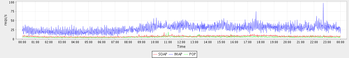 Host zm07.stanford.edu: Mailboxd: Request Rate by Client Protocol