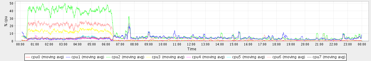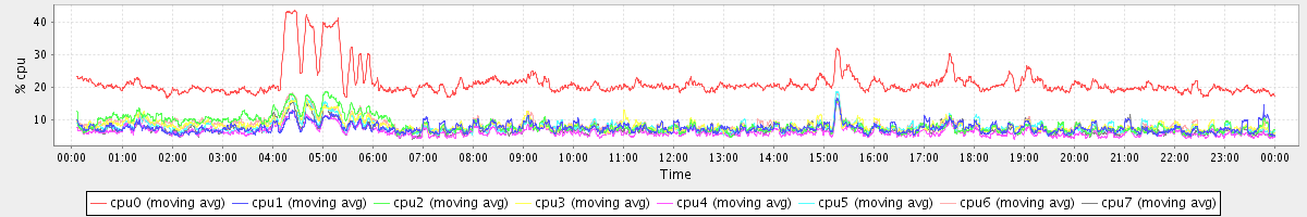 avg(cpu0) = 1.51 avg(cpu1) = 0.17 avg(cpu2) = 0.21 avg(cpu3) = 0.14 avg(cpu4) = 0.12 avg(cpu5) = 0.13 avg(cpu6) = 0.16 avg(cpu7) = 0.12