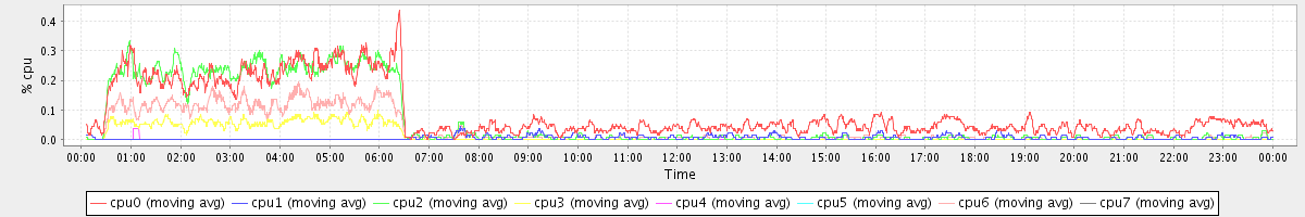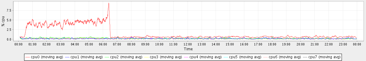 avg(cpu0) = 0.09 avg(cpu1) = 0.00 avg(cpu2) = 0.06 avg(cpu3) = 0.01 avg(cpu4) = 0.00 avg(cpu5) = 0.00 avg(cpu6) = 0.03 avg(cpu7) = 0.00