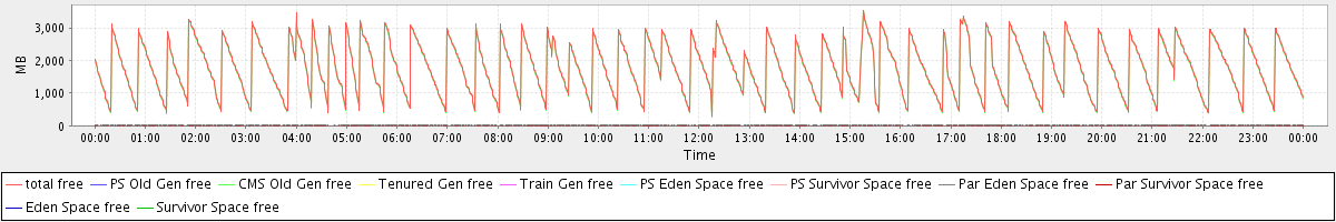 avg(total free) = 1783.94 avg(PS Old Gen free) = 0.00 avg(CMS Old Gen free) = 1762.82 avg(Tenured Gen free) = 0.00 avg(Train Gen free) = 0.00 avg(PS Eden Space free) = 0.00 avg(PS Survivor Space free) = 0.00 avg(Par Eden Space free) = 21.05 avg(Par Survivor Space free) = 0.06 avg(Eden Space free) = 0.00 avg(Survivor Space free) = 0.00