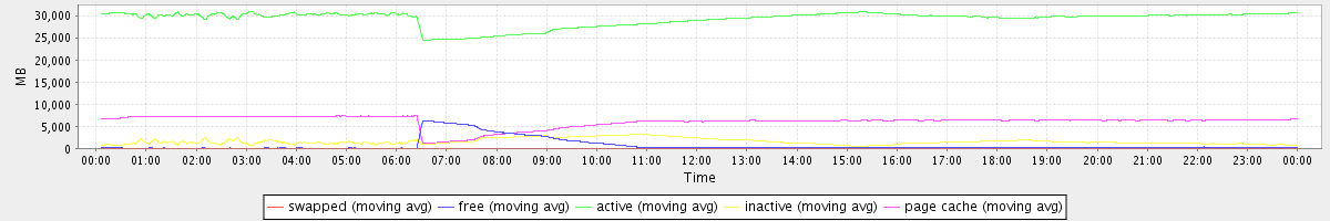 avg(swapped) = 0.23 avg(free) = 707.42 avg(active) = 29248.56 avg(inactive) = 1568.23 avg(page cache) = 6090.99