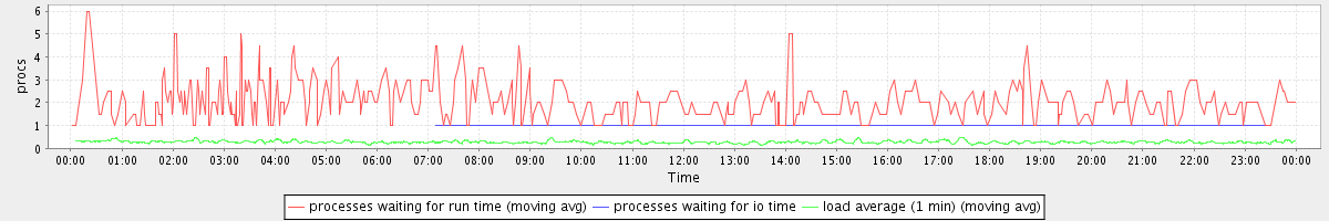avg(processes waiting for run time) = 0.34 avg(processes waiting for io time) = 0.00 avg(load average (1 min)) = 0.28