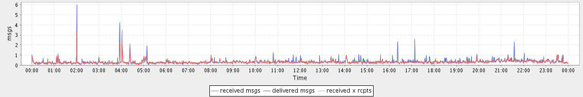 avg(received msgs) = 0.31 avg(delivered msgs) = 0.34 avg(received x rcpts) = 0.36