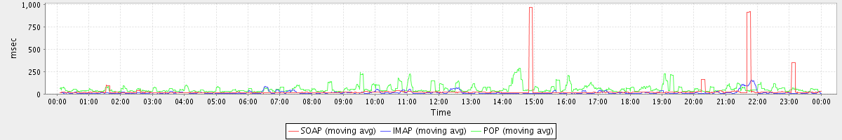 avg(IMAP) = 1.90 avg(IMAP SSL) = 505.19 avg(POP) = 0.01 avg(POP SSL) = 10.36