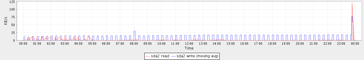 avg(sda2 read) = 0.13 avg(sda2 write) = 4.87