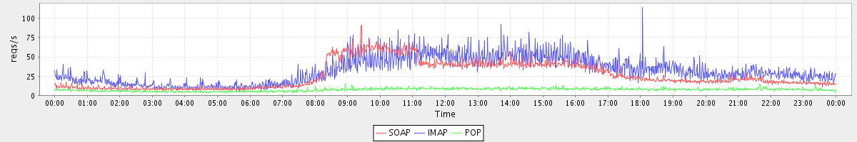 Host zm06.stanford.edu: Mailboxd: Request Rate by Client Protocol