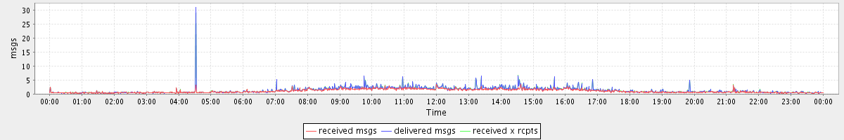 avg(received msgs) = 1.07 avg(delivered msgs) = 1.30 avg(received x rcpts) = 1.34