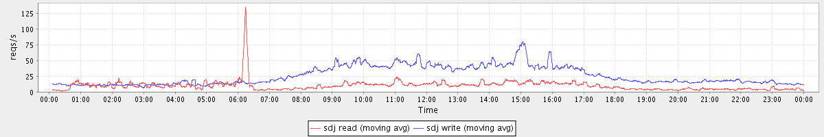 avg(sda read) = 24.55 avg(sda write) = 56.57