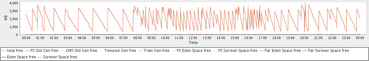 avg(total free) = 1984.04 avg(PS Old Gen free) = 0.00 avg(CMS Old Gen free) = 1963.09 avg(Tenured Gen free) = 0.00 avg(Train Gen free) = 0.00 avg(PS Eden Space free) = 0.00 avg(PS Survivor Space free) = 0.00 avg(Par Eden Space free) = 20.88 avg(Par Survivor Space free) = 0.06 avg(Eden Space free) = 0.00 avg(Survivor Space free) = 0.00