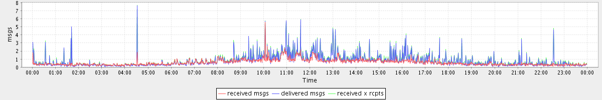 avg(received msgs) = 0.58 avg(delivered msgs) = 0.76 avg(received x rcpts) = 0.84