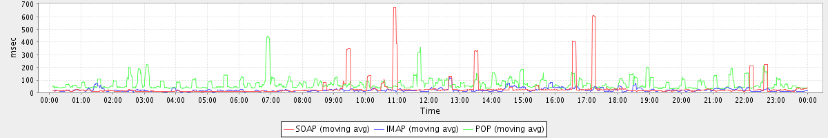 avg(IMAP) = 6.27 avg(IMAP SSL) = 700.91 avg(POP) = 0.00 avg(POP SSL) = 11.41
