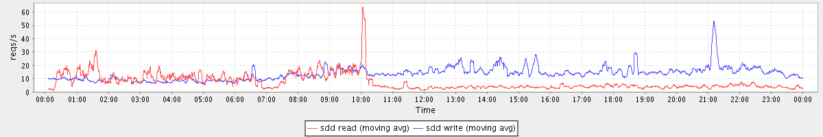 avg(sda1 read) = 20.79 avg(sda1 write) = 43.21