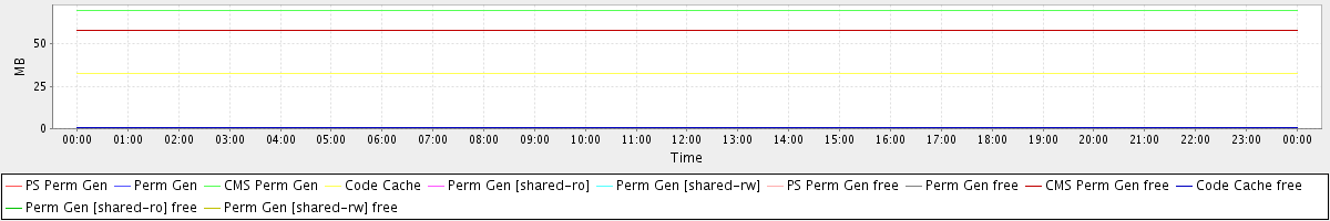 avg(PS Perm Gen) = 0.00 avg(Perm Gen) = 0.00 avg(CMS Perm Gen) = 69.79 avg(Code Cache) = 32.48 avg(Perm Gen [shared-ro]) = 0.00 avg(Perm Gen [shared-rw]) = 0.00 avg(PS Perm Gen free) = 0.00 avg(Perm Gen free) = 0.00 avg(CMS Perm Gen free) = 58.21 avg(Code Cache free) = 0.46 avg(Perm Gen [shared-ro] free) = 0.00 avg(Perm Gen [shared-rw] free) = 0.00