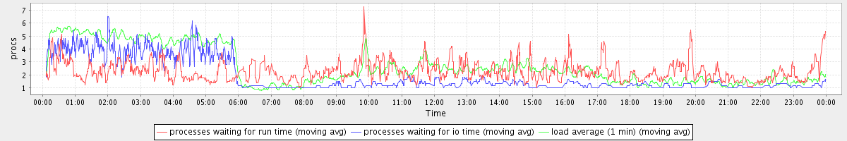 avg(processes waiting for run time) = 1.40 avg(processes waiting for io time) = 1.11 avg(load average (1 min)) = 2.62