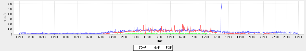 Host zm05.stanford.edu: Mailboxd: Request Rate by Client Protocol