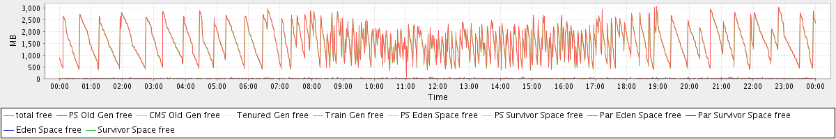 avg(total free) = 1586.26 avg(PS Old Gen free) = 0.00 avg(CMS Old Gen free) = 1565.56 avg(Tenured Gen free) = 0.00 avg(Train Gen free) = 0.00 avg(PS Eden Space free) = 0.00 avg(PS Survivor Space free) = 0.00 avg(Par Eden Space free) = 20.64 avg(Par Survivor Space free) = 0.06 avg(Eden Space free) = 0.00 avg(Survivor Space free) = 0.00