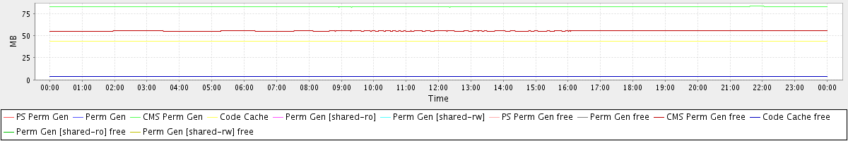 avg(PS Perm Gen) = 0.00 avg(Perm Gen) = 0.00 avg(CMS Perm Gen) = 82.59 avg(Code Cache) = 43.81 avg(Perm Gen [shared-ro]) = 0.00 avg(Perm Gen [shared-rw]) = 0.00 avg(PS Perm Gen free) = 0.00 avg(Perm Gen free) = 0.00 avg(CMS Perm Gen free) = 55.29 avg(Code Cache free) = 3.81 avg(Perm Gen [shared-ro] free) = 0.00 avg(Perm Gen [shared-rw] free) = 0.00