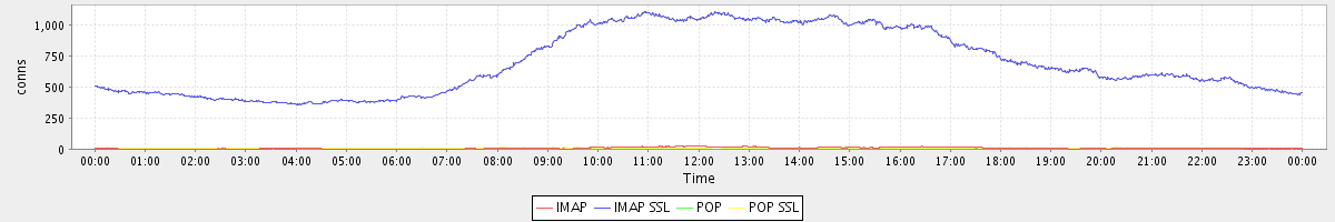 Host zm04.stanford.edu: Mailboxd: Active Connections by Client Protocol
