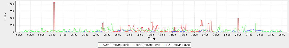 Host zm04.stanford.edu: Mailboxd: Response Time by Client Protocol