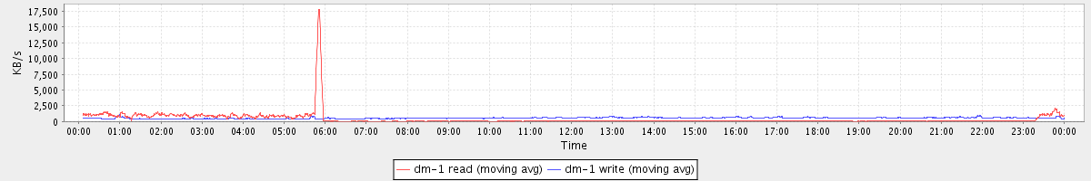 avg(dm-1 read) = 414.26 avg(dm-1 write) = 559.35