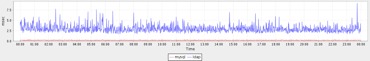 avg(mysql) = 0.17 avg(ldap) = 2.96