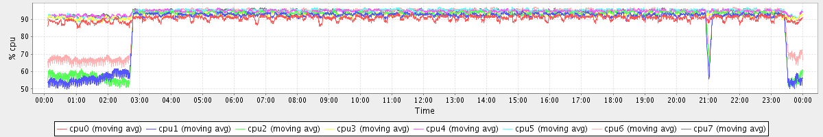 avg(cpu0) = 90.66 avg(cpu1) = 87.47 avg(cpu2) = 88.35 avg(cpu3) = 92.55 avg(cpu4) = 94.26 avg(cpu5) = 94.69 avg(cpu6) = 91.38 avg(cpu7) = 94.58