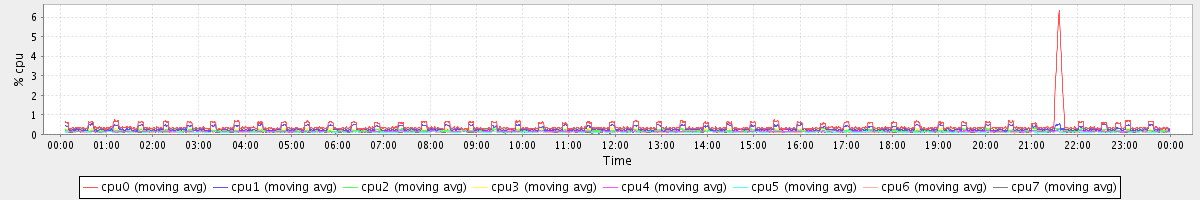 avg(cpu0) = 0.00 avg(cpu1) = 0.00 avg(cpu2) = 0.04 avg(cpu3) = 0.02 avg(cpu4) = 0.11 avg(cpu5) = 0.01 avg(cpu6) = 0.01 avg(cpu7) = 0.00