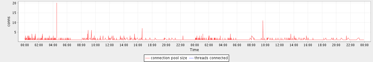 avg(connection pool size) = 0.57 avg(threads connected) = 0.00