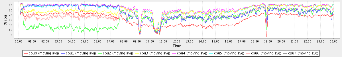 avg(cpu0) = 61.95 avg(cpu1) = 75.33 avg(cpu2) = 61.88 avg(cpu3) = 78.65 avg(cpu4) = 84.19 avg(cpu5) = 82.05 avg(cpu6) = 69.50 avg(cpu7) = 82.59
