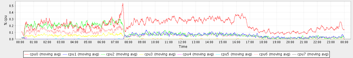 avg(cpu0) = 0.21 avg(cpu1) = 0.04 avg(cpu2) = 0.10 avg(cpu3) = 0.02 avg(cpu4) = 0.00 avg(cpu5) = 0.00 avg(cpu6) = 0.06 avg(cpu7) = 0.00