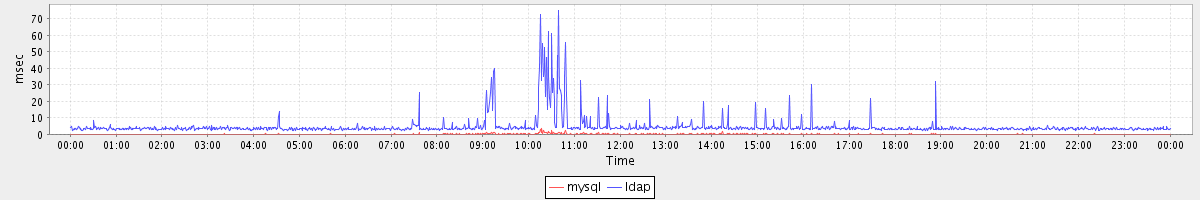 avg(mysql) = 0.21 avg(ldap) = 4.75