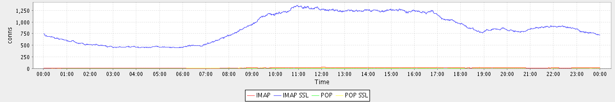 Host zm07.stanford.edu: Mailboxd: Active Connections by Client Protocol