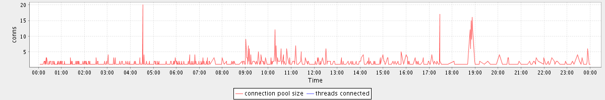 avg(connection pool size) = 0.95 avg(threads connected) = 0.00