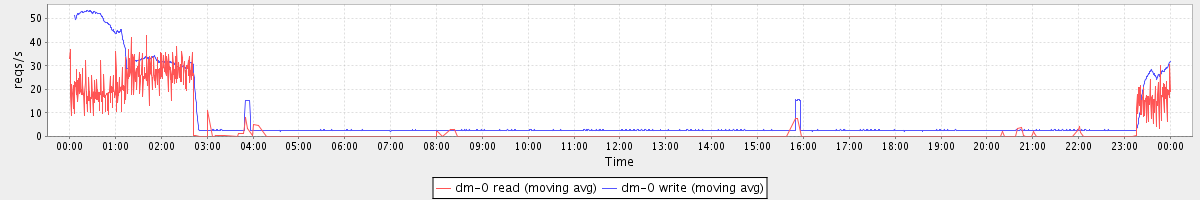 avg(dm-1 read) = 53.32 avg(dm-1 write) = 0.17