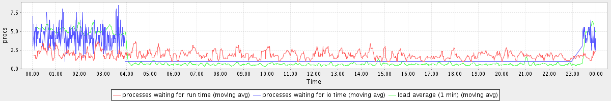 avg(processes waiting for run time) = 0.78 avg(processes waiting for io time) = 0.83 avg(load average (1 min)) = 1.48