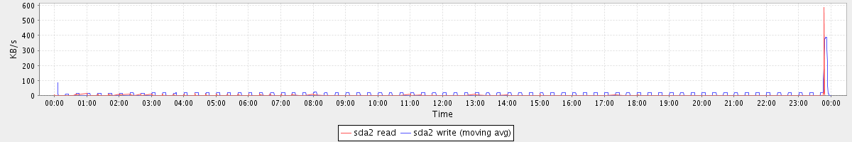 avg(sda2 read) = 0.36 avg(sda2 write) = 6.79
