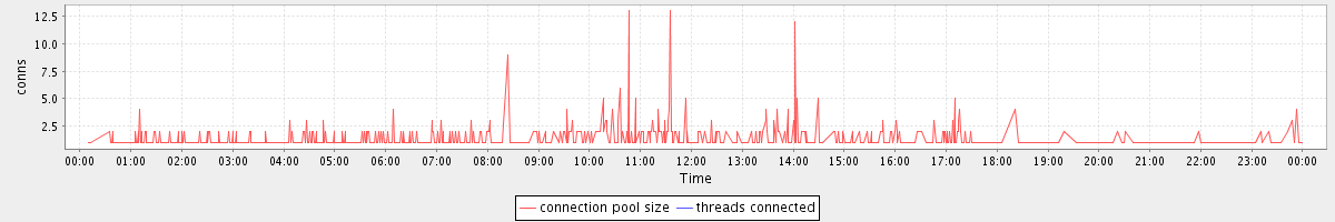 avg(connection pool size) = 0.84 avg(threads connected) = 0.00