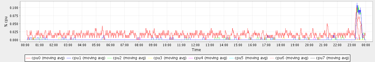 avg(cpu0) = 0.59 avg(cpu1) = 0.44 avg(cpu2) = 0.32 avg(cpu3) = 0.34 avg(cpu4) = 0.23 avg(cpu5) = 0.22 avg(cpu6) = 0.20 avg(cpu7) = 0.15