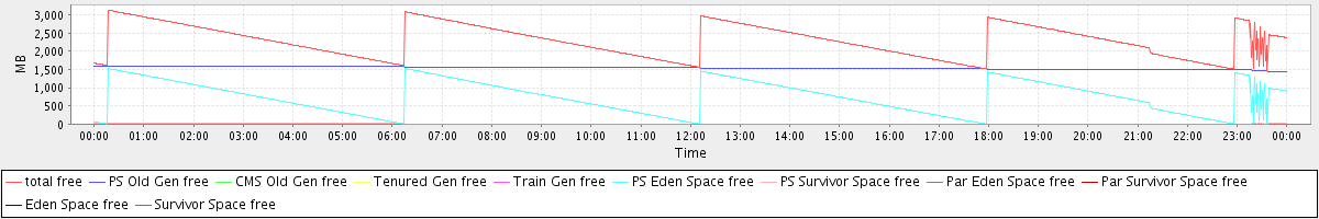 avg(total free) = 2294.59 avg(PS Old Gen free) = 1542.66 avg(CMS Old Gen free) = 0.00 avg(Tenured Gen free) = 0.00 avg(Train Gen free) = 0.00 avg(PS Eden Space free) = 748.03 avg(PS Survivor Space free) = 3.90 avg(Par Eden Space free) = 0.00 avg(Par Survivor Space free) = 0.00 avg(Eden Space free) = 0.00 avg(Survivor Space free) = 0.00