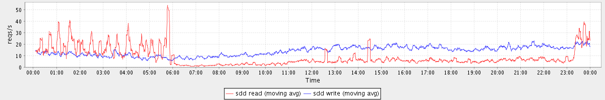 avg(sda1 read) = 21.64 avg(sda1 write) = 51.98