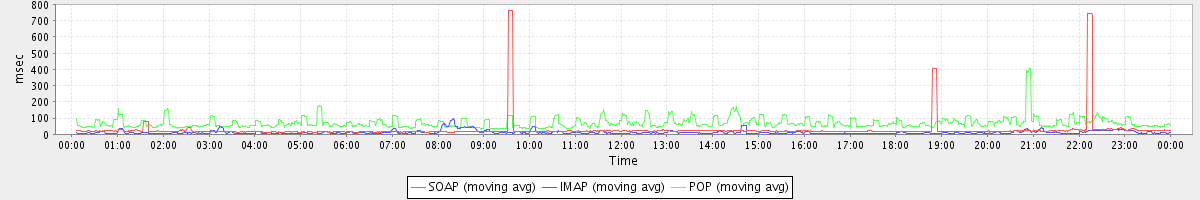 avg(IMAP) = 11.92 avg(IMAP SSL) = 722.98 avg(POP) = 0.03 avg(POP SSL) = 13.85