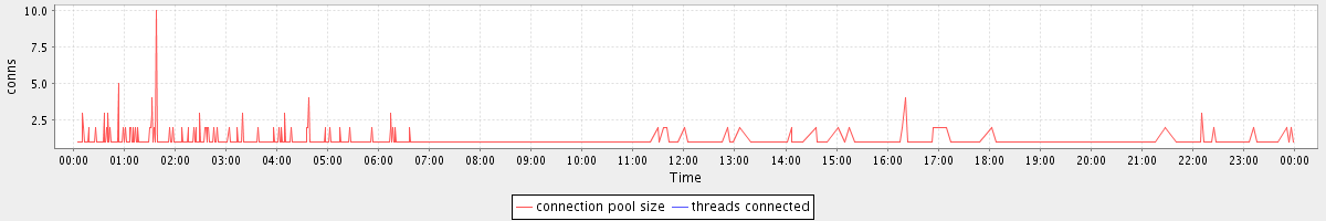 avg(connection pool size) = 0.46 avg(threads connected) = 0.00